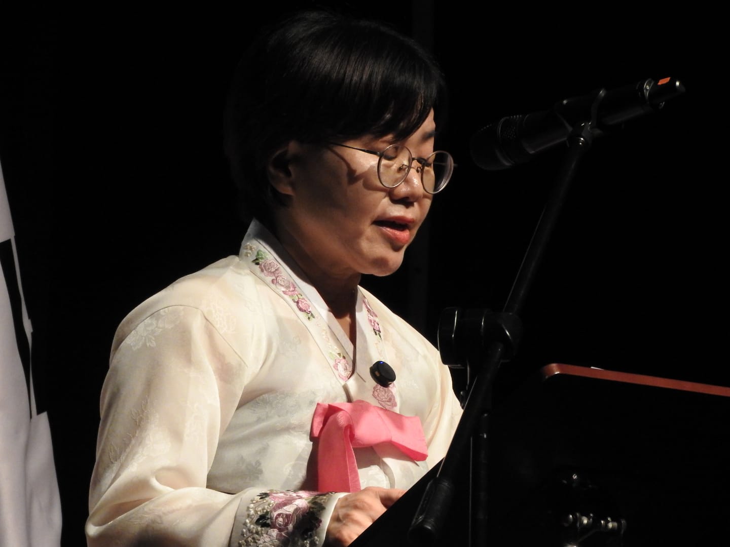 La encargada de inaugurar los discursos fue Misuk Kim, directora del Centro Cultural Coreano en Argentina. Con una calidez que conquistó inmediatamente a la sala, Kim agradeció la masiva presencia de jóvenes y familias.