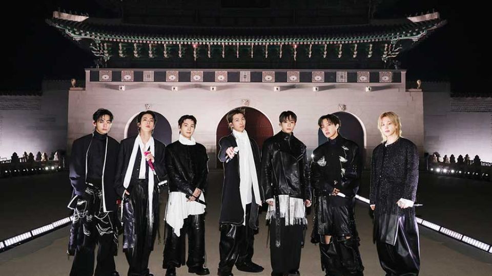 La puesta en escena comenzó con el sonido de la campana real, seguido por la entrada de los siete miembros a través del “Camino del Rey” (woldae), una plataforma elevada frente a la puerta Gwanghwamun. Los integrantes vistieron atuendos negros que reinterpretaban la armadura tradicional coreana con un estilo moderno, simbolizando su regreso como guerreros culturales. Durante la interpretación de “Body to Body”, 50 bailarines de danza tradicional realizaron coreografías en las plataformas superiores del palacio Gyeongbokgung, creando un efecto visual que vinculaba la historia de la dinastía Joseon con el presente tecnológico.